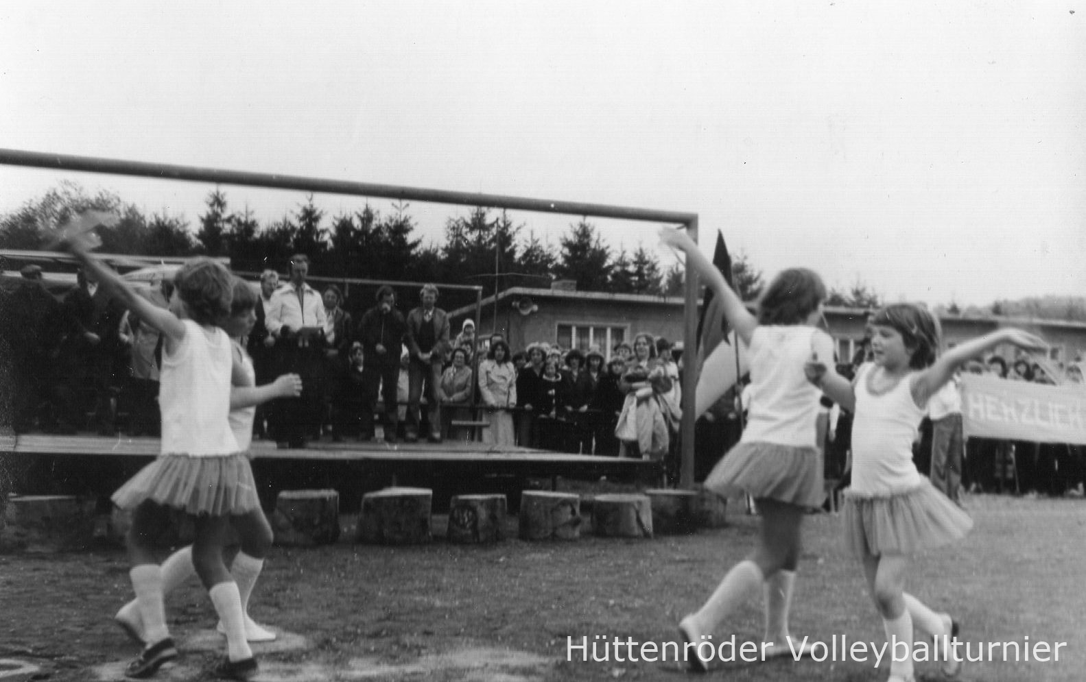 Das Hüttennröder Volleyball-Turnier hat mittlerweile Tradition!!! Es ist das größte und damit auch bekannteste seiner Art in Deutschland und das kleine Dorf im Landkreis Wernigerode bemüht sich, die Spitzenposition zu erhalten. Dabei fing alles einmal ganz unscheinbar an in Hüttenrode im Harz, 477 m über dem Meeresspiegel ... Dorf mit etwa 15oo Einwohnern ... Laub- und Mischwald bis an das Dorf auf drei Seiten heran.. an der B 27 gelegen keine Industrie .. auf einer Harzhochfläche gelegen ...In der ersten Hälfte unseres Jahrhunderts spielte der Sport zwar nicht die untergeordnete, aber auch keine besondere Rolle in Hüttenrode. Zwar wurde bereits 1894 mit dem Arbeiter-Turn-Verein die erste Organisationsform im Dorf gegründet, aber die Verbreitung hielt sich in Grenzen. Turner und Radfahrer prägten das sportliche Gesicht des Dorfes, auch Prellball wurde gespielt. Und da kam man 1969 auf ein kleines VOLLEYBALL-TURNIER. 1969! Volleyball? In diesem Jahr gab es zuerst die sogenannten Dorfmeisterschaften. Acht Mannschaften spielten auf zwei Plätzen im Juni um den Pokal des Rates der Gemeinde Hüttenrode.
