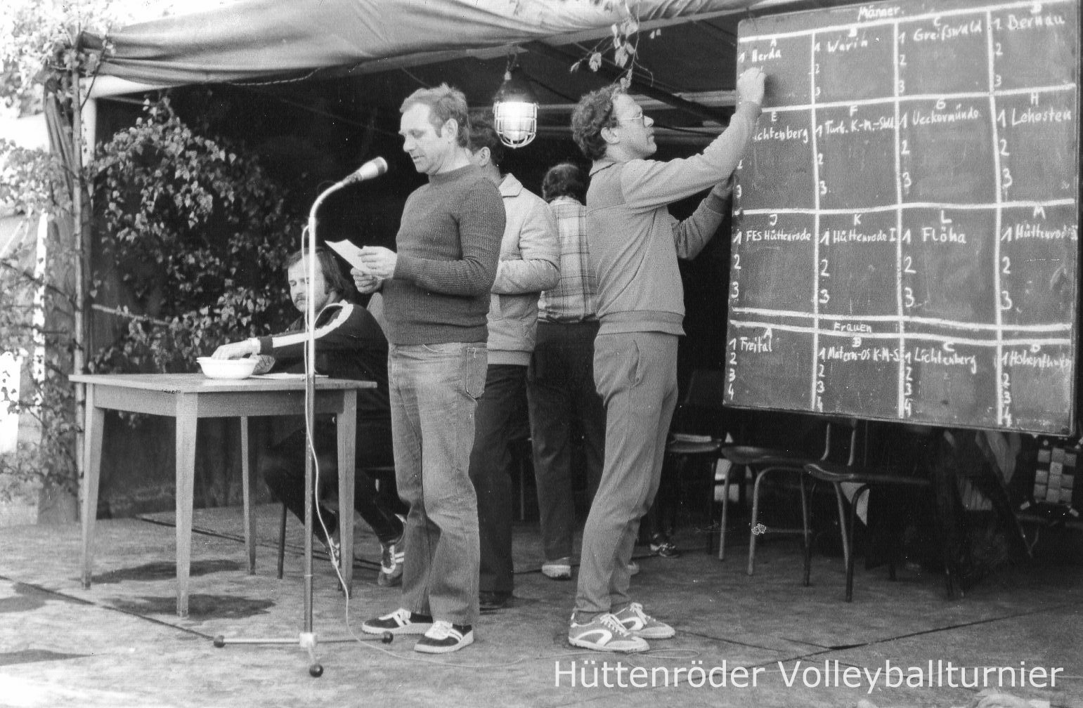 Es erscheint mehr als nur Chronistenpflicht zu sein, ihre Namen zu nennen: Walter Schmeiß als Wirt des Sportlerheims, Gerhard Charwat als Kapitän der Gebrüdermannschaft, Dietrich Rüde als Direktor der Hüttenröder Schule, Christoph Knautz als Sportlehrer der Betriebsschule Braunesumpf, Wilhelm Holland als Technischer Leiter der BSG sowie die beiden Sektionsvertreter Günter Beckmann vom Wintersport und Peter Gehlmann vom Fußball. Die folgenden Volleyballturniere ab 197o waren offen für den ehemaligen Bezirk Magdeburg ausgeschrieben. Gewinner kamen von der EOS Staßfurt und dem IBK Magdeburg. In diese Zeit fällt auch die Erfindung vom eigentlichen Hüttenröder Volleyball. Während alle Mannschaften (seit 197o immer Pfingsten) in den Internatsräumen der Betriebsschule für Datenverarbeitung in Braunesumpf übernachteten, kamen die Volleyballer von Kali Wolmirstedt mit ihren Familienangehörigen, brachten Zelte mit und machten "sportlichen Urlaub im Harz" am Rande des Sportplatzes.